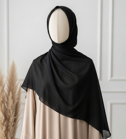 Our Premium Chiffon Hijabs are crafted from a light, soft, and breathable fabric—designed for comfort and elegance in every season. Versatile for everyday wear or special occasions, these chiffon hijabs drape beautifully and elevate any outfit. Due to their smooth finish, we recommend styling with an underscarf and/or magnets for a secure fit.