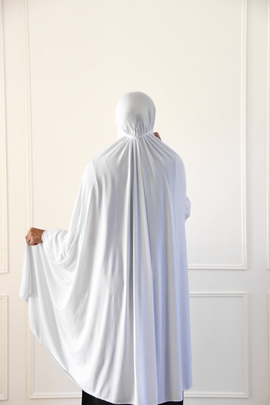 Prayer Khimar with Full Sleeves and Built-in Niqab - White